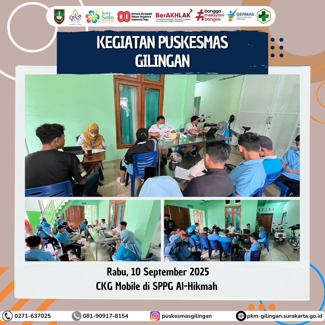 Tim Puskesmas Gilingan melaksanakan CKG Mobile di SPPG Al-Hikmah.